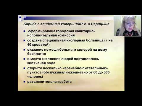Видеолекция "Эпидемии в Царицыне и борьба с ними: страницы истории". Рассказывает Елена Геннадьевна Олейникова, доктор исторических наук, профессор, директор центра "Школа кадрового резерва" Волгоградского института управления - филиала РАНХиГС.